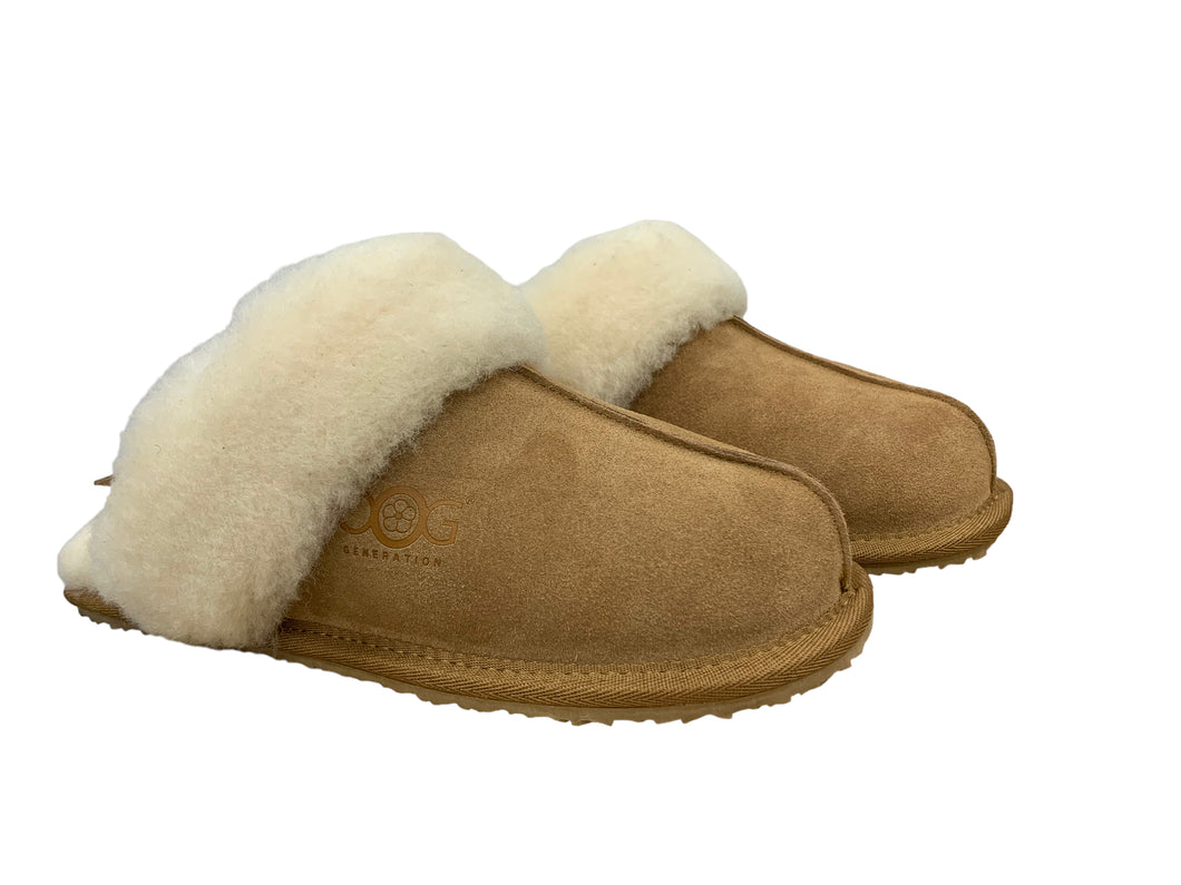 OOG Hausschuhe CAMEL (OB2028 CAMEL) für Damen, Slippers aus Echt-Leder, Plüsch, warm gefüttert, für Indoor und Outdoor