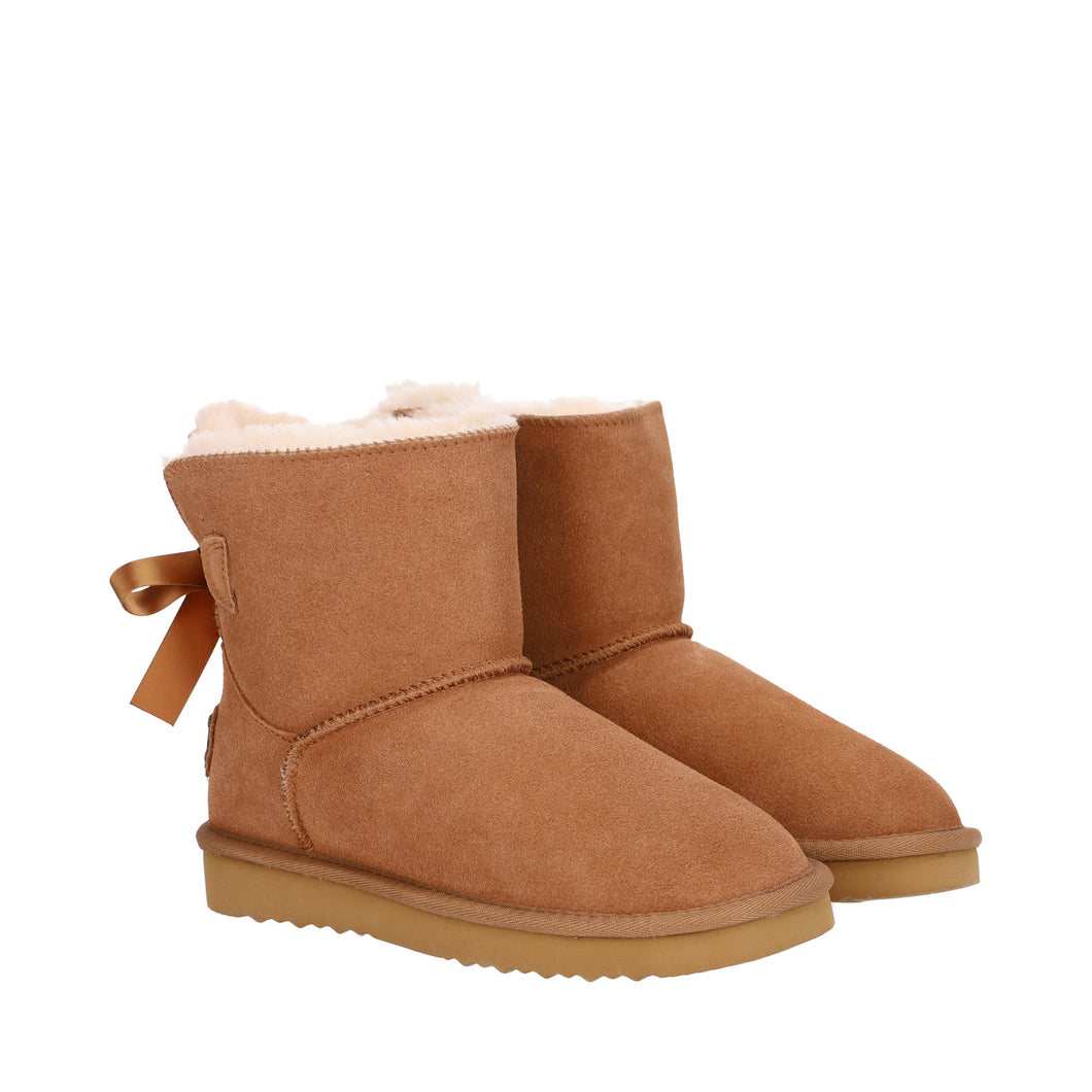 OB6166 Beige OOG Damen Leder Boots mit Schleife
