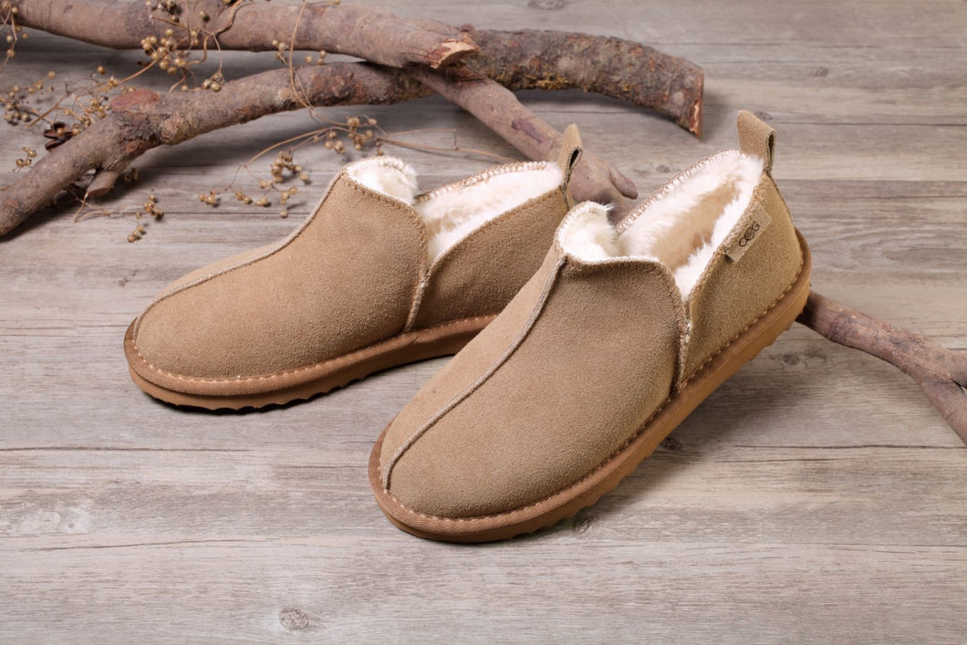 • OOG Hausschuhe CAMEL (OB2028 CAMEL) für Damen, Slippers aus Echt-Leder, Plüsch, warm gefüttert, für Indoor und Outdoor