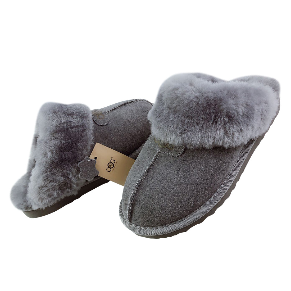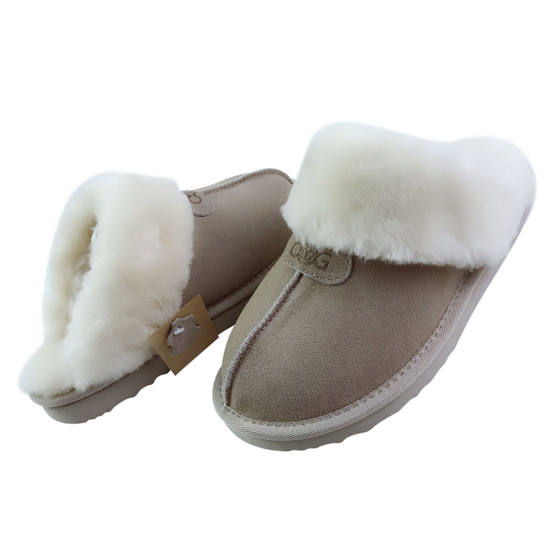 Dieser gemütliche Hausschuh mit weichem Einstieg ist aus Leder und Lammfell gefertigt, und wird mit Sohlen aus Formgummi abgerundet.